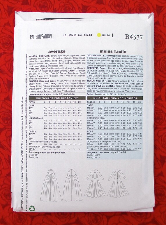Butterick Costume Sewing Pattern B4377 Medieval Gown Dress Etsy