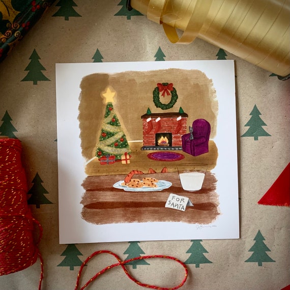 Cozy Christmas Scene Art Print Square Unframed Winter Holidays Home Decor Christmas Tree Wall Art Festive Ornaments Painting Hygge Decor Etsy