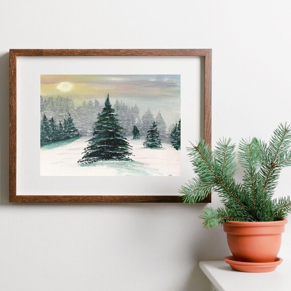 Christmas Tree Print Christmas Wall Art Holiday Wall Art Christmas Painting Winter Scene Print Holiday Decor Snowy Trees Etsy