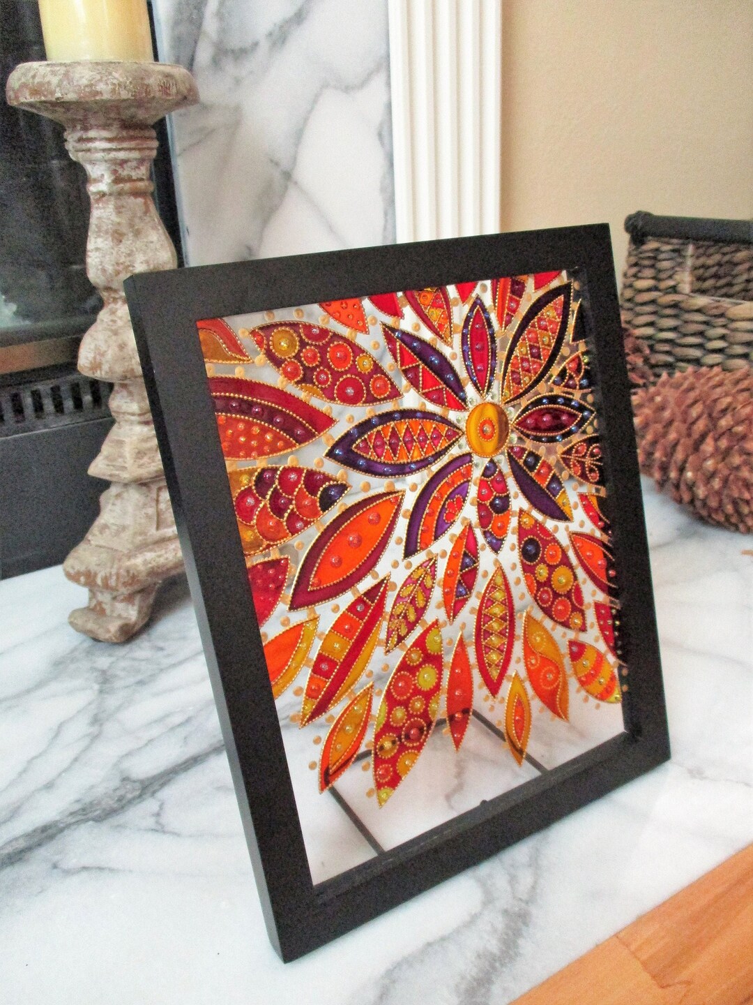 Abstract Flower Art 11x9 Glass Painting Bohemian Decor Painted Glass Stained Glass Glass Art Sun Catcher Wall Decor Original Art Etsy